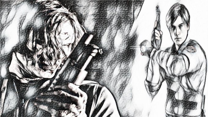 Working on this now #wip #digitalart #fanart #crossover @ZOMBIEWASHOTGUN with Leon from @RE_Games made a gif also i'll add.