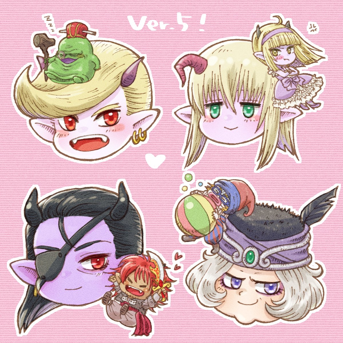 #100日チャレンジ 017、Ver.5の推したち+α 順不同でペペロくん(かわいい枠)アスバル(不憫枠)ナジーン(これ嫌いな人いないよね枠)マリーン(お姉様素敵ー!!!枠) 他のキャラクターもいいキャラばっかりですが!