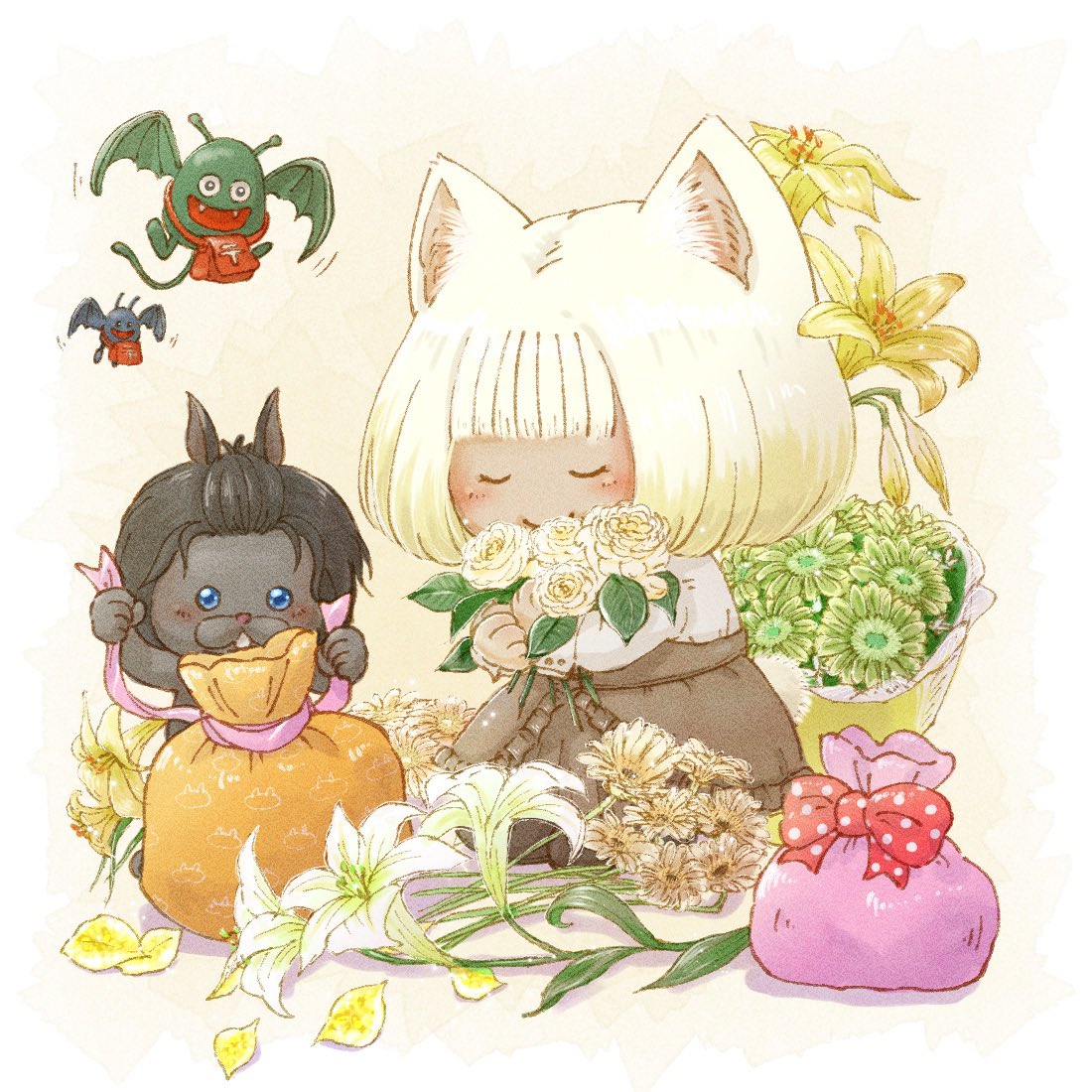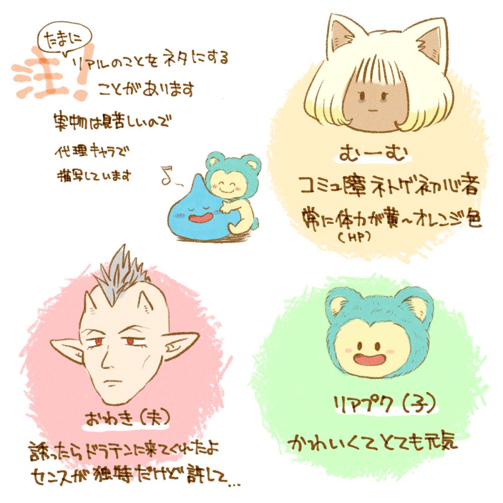 #今月描いた絵を晒そう なんか先月の絵は頭身が高くて黒っぽくてプクリポ成分が少ない…!あとPTA的な活動でやたらと疲れ果てていた記憶があります 今月も楽しくおえかきしたいな! (4枚目ちょっと怖い絵です)