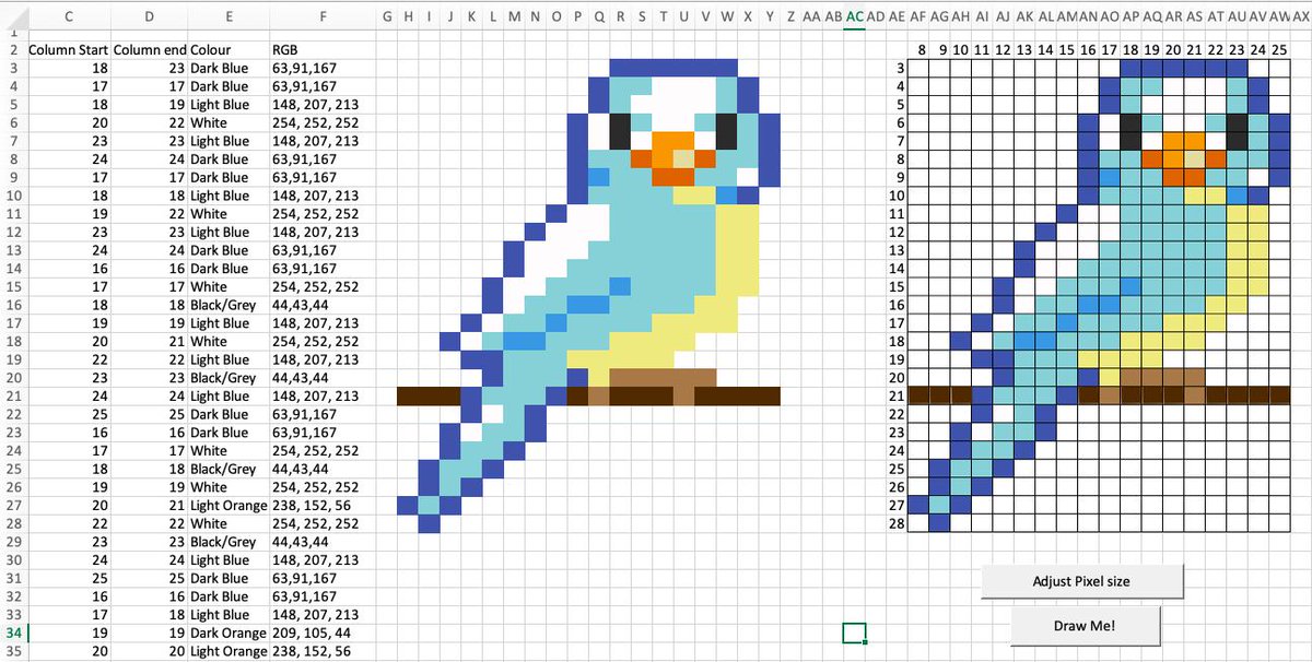 SO happy with how this project has worked out! Year 9 #DigitalTech class: #Coding in @msexcel to create #pixelart using #visualbasic. Great project for teaching CS concepts+#RGB+Excel, along with the origins of programmer art. #MicrosoftEDU #MIEExpert #MSAUEdu #EdTech #EdTools
