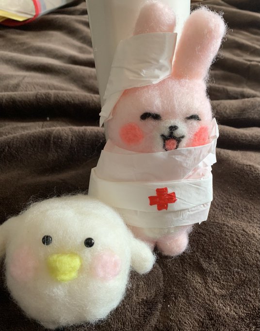 1 10 お世話になっている整骨院に 子どもさんが遊べるようにプレゼントした作品 本日、我が家へ入院となりました 振り回して遊んだ子がいたようで 腕がちぎれそうとの事です ちゃんと包帯を作って巻いてくれて いました。 大切に思ってくれていたので 凄く嬉しかったです #羊毛フェルト 22/06/06 13:46