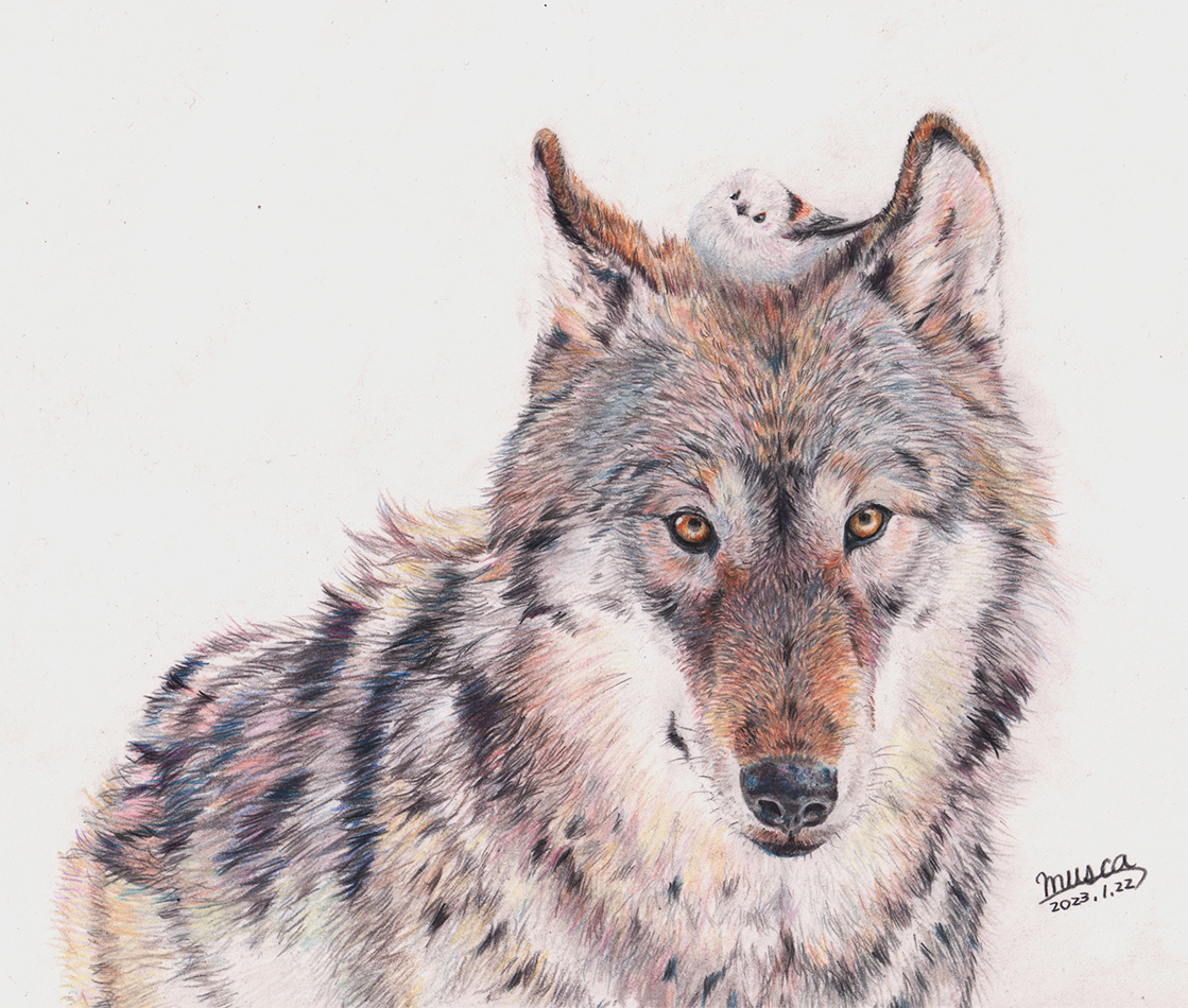 羊毛フェルト、オオカミのポケットブローチ誕生。 ポケットから頭と前足を出してつけるブローチです。ポケットに入れなくてもつけられます。 いきもにあ2022に出します。 #いきもにあ2022 #オオカミ