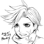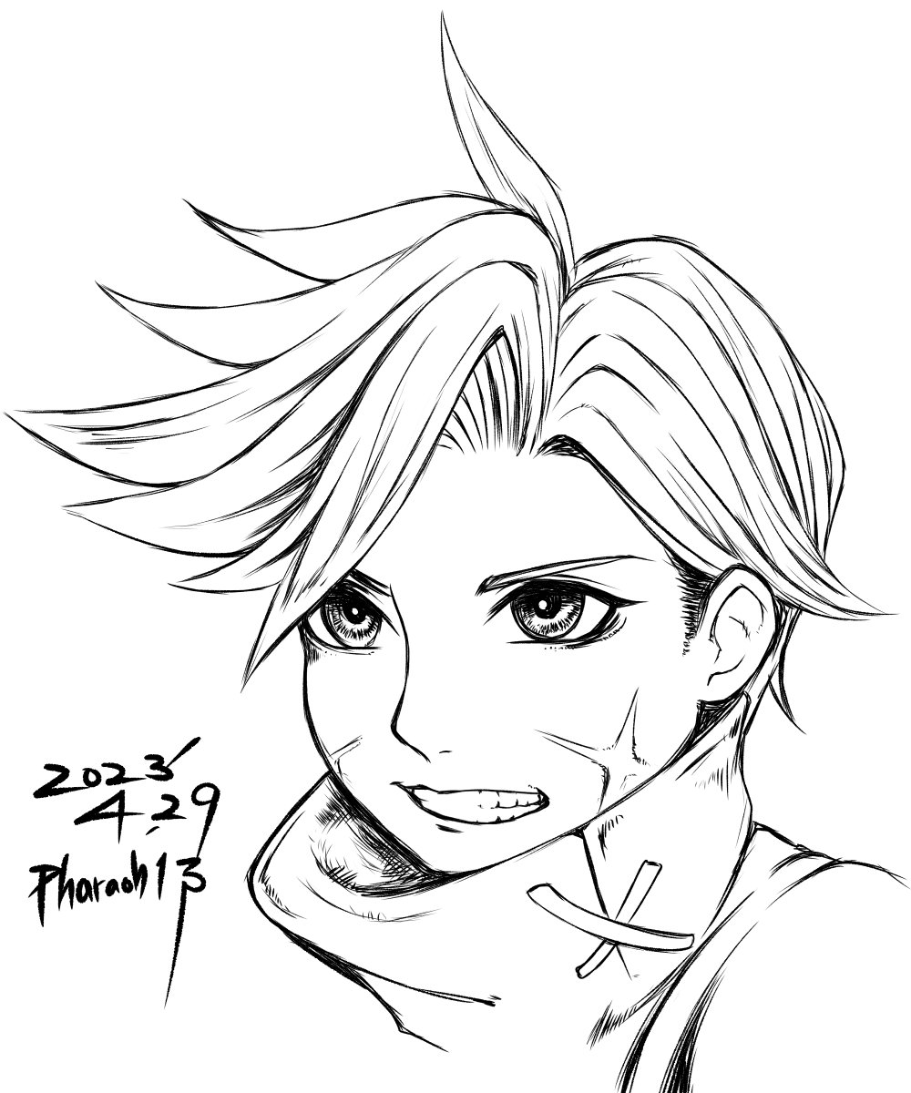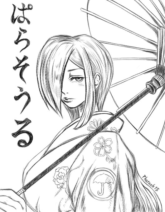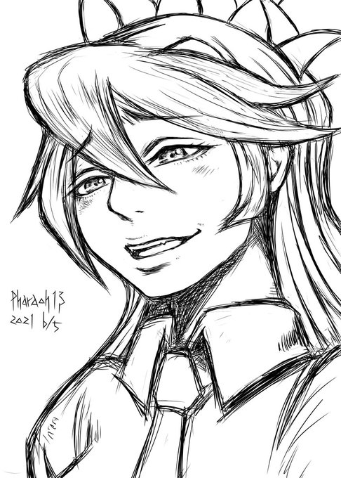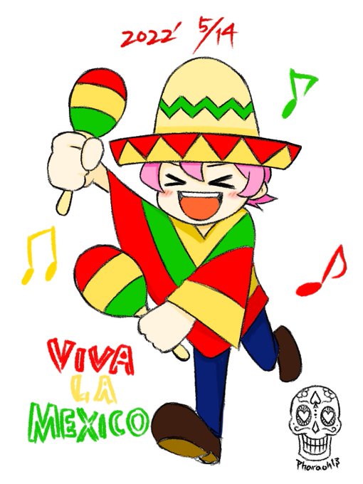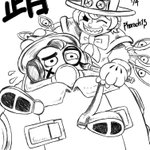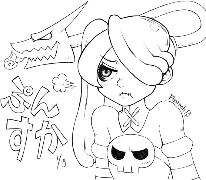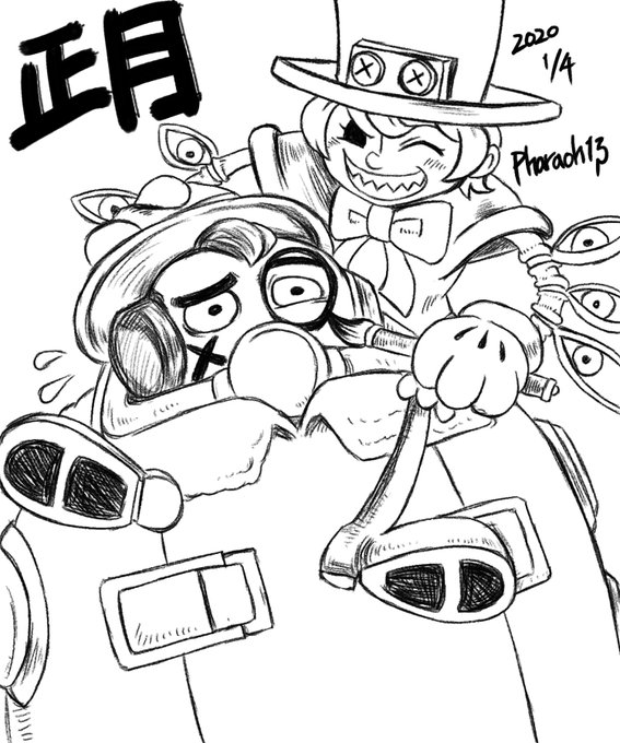 #スカルガ版深夜の真剣お絵描き60分一本勝負 正月 「知ってるかサクソフォン・マン?日本の正月は相手の顔に墨で落書きをする【書き初め】っていう文化があるらしいぜ!」 「(えっ…これなんか違くない…?)」