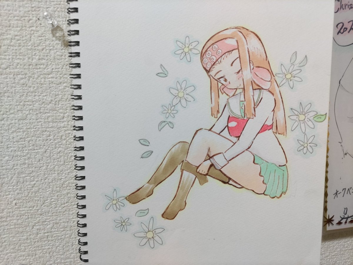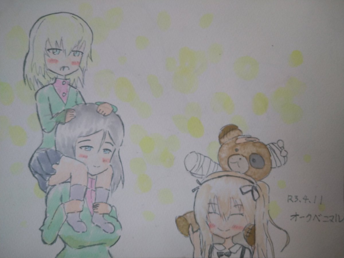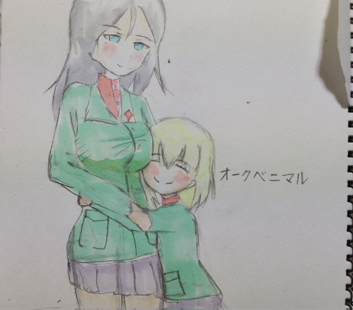 #週末ガルパンお絵描き120分一本勝負 #週末ガルパンお絵描き120分一本勝負20220813 ポケモンの卵をあたためる桂利奈ちゃん。 COPIC無くしたので色鉛筆で塗りましたm(_ _)m