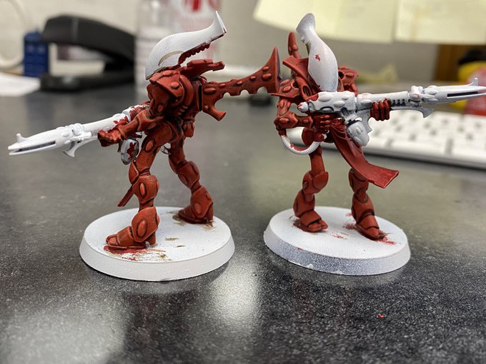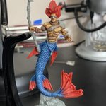 #Hobbystreak day 133. The eldar are finally getting another color painted on other than red! Day 134 was my stream/#mermay project, Conan the mermanian/Lionel the Catfish ruler/Merman Jonny Bravo (take your pick!)