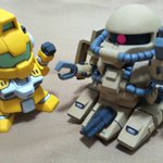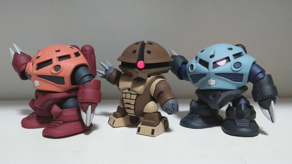 アッガイできました!BB戦士水泳部セットではなく、マイクロウォーズ版とガンプラコレクション版を混ぜて好みの体型にしています。Gジェネズゴックと並べられるサイズに調整しました。 #SDガンダム #筆塗り