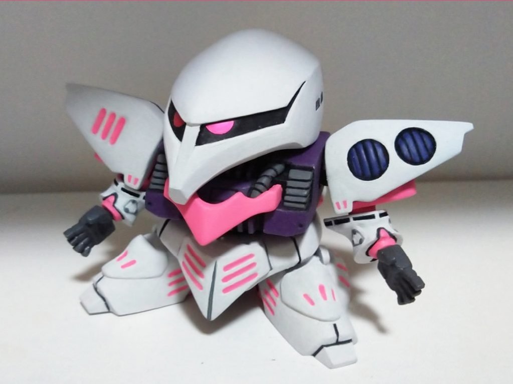 ジェガンD型先行配備機できました!Gジェネキットの頭や腰などに手を加えた上、肩は食玩アサルトキングダム、バックパックはマイクロウォーズのパーツを使って仕上げています。 #SDガンダム #BB戦士 #筆塗り