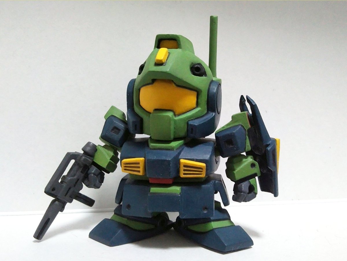 ハイザック連邦仕様できました!ショックガンダムシリーズSGシャアザクをベースに、BB戦士ジョニザクのパーツ等を混ぜ、頭はクロスシルエット版ザク、ライフルは1/220マラサイのパーツ、足はGジェネジェガンのパーツをそれぞれ加工しています。 #SDガンダム #BB戦士
