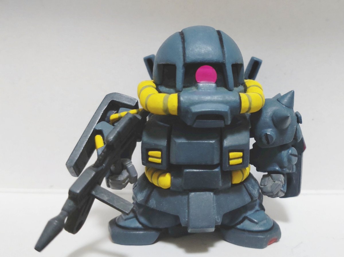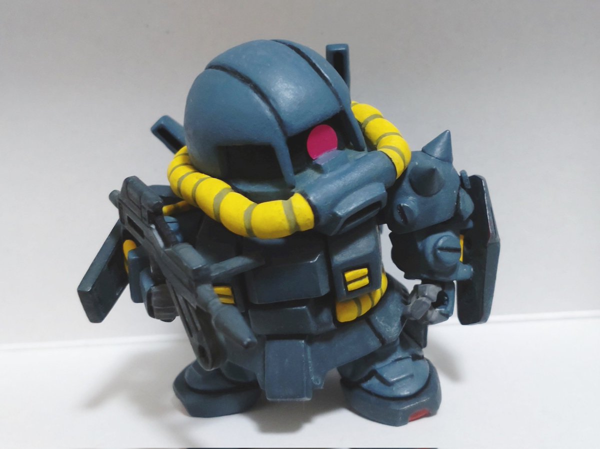 37 156 ハイザック連邦仕様できました!ショックガンダムシリーズSGシャアザクをベースに、BB戦士ジョニザクのパーツ等を混ぜ、頭はクロスシルエット版ザク、ライフルは1/220マラサイのパーツ、足はGジェネジェガンのパーツをそれぞれ加工しています。 #SDガンダム #BB戦士 22/05/31 19:34