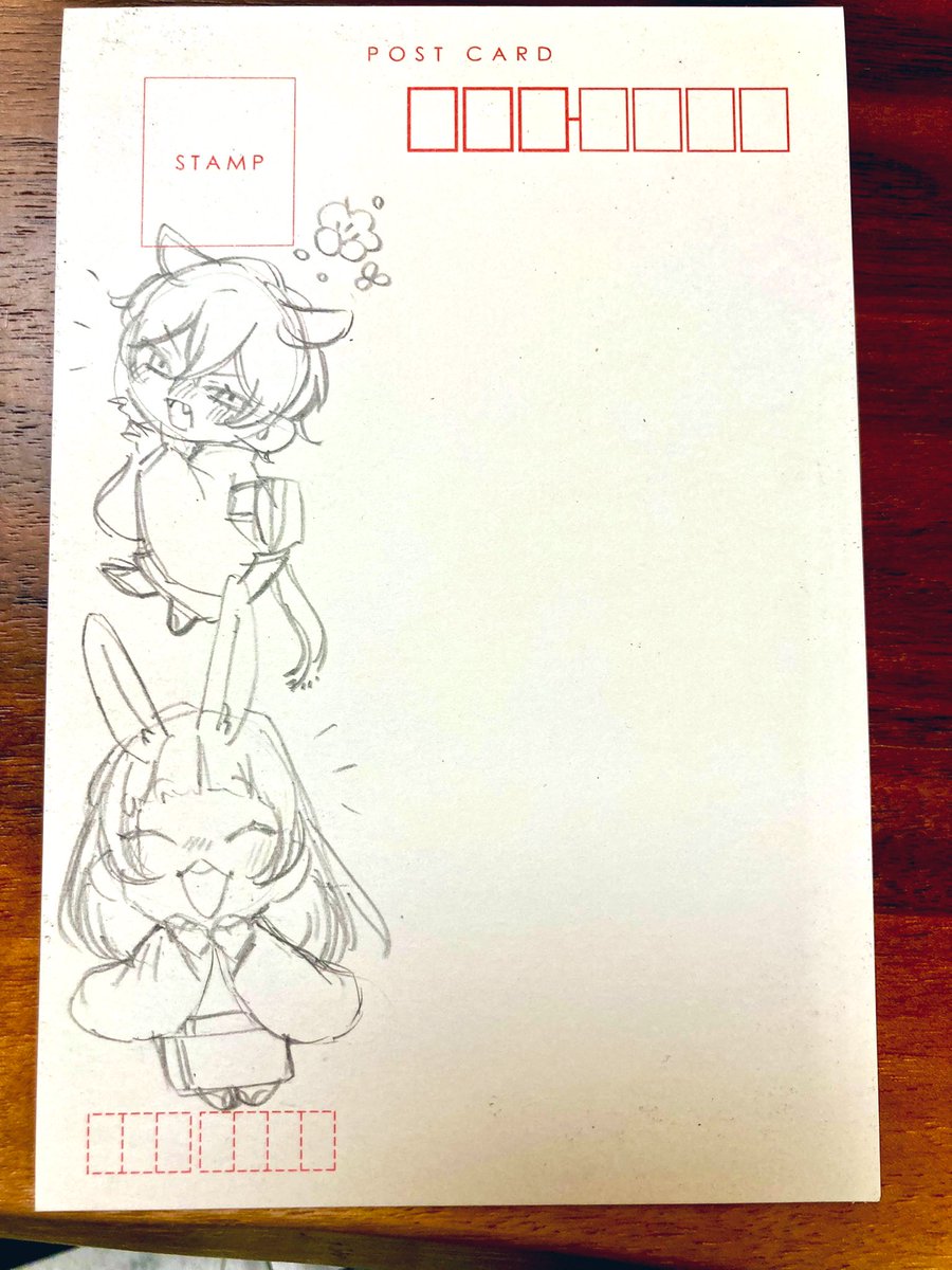 久しぶりにアナログでらくがきしてる お正月なので年賀状風… 可愛く描けたから、仕上げたらなんかしたいな〜