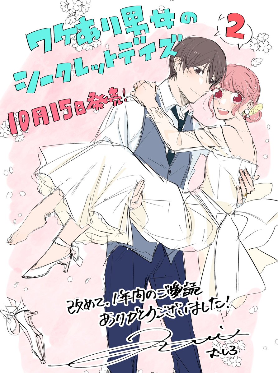 《お知らせ》 本日、ワケあり男女のシークレットデイズ2巻の発売日です! (こちらはボツになったウェディングバージョンの2人です💒💍🤍) そして、改めて1年間のご愛読ありがとうございました! 2巻もよろしくお願いします🌸 #ワケあり男女のシークレットデイズ #ワケありデイズ
