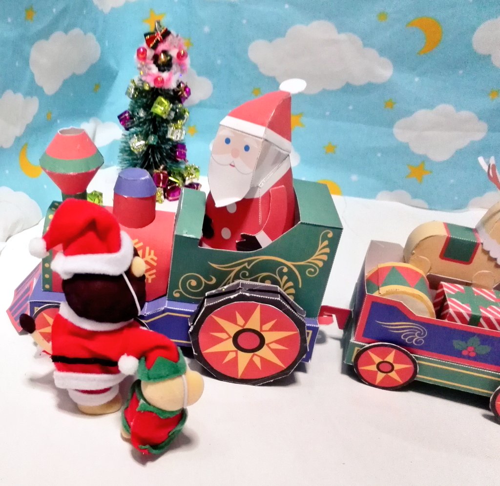 1 16 皆様❗こんバニア⤴️🐰 今日は #クリスマス の準備をしてました😊 機関車とサンタさん、雪だるま、ツリー、プレゼントボックス、ブーツ。 色々作りました⤴️ 全部 #ペーパークラフト です😊 素敵な乗り物ですね⤴️って #ライオンサンタ の親子が興味津々です😊 #シルバニアファミリー ↓続きます❗ 21/11/06 01:54