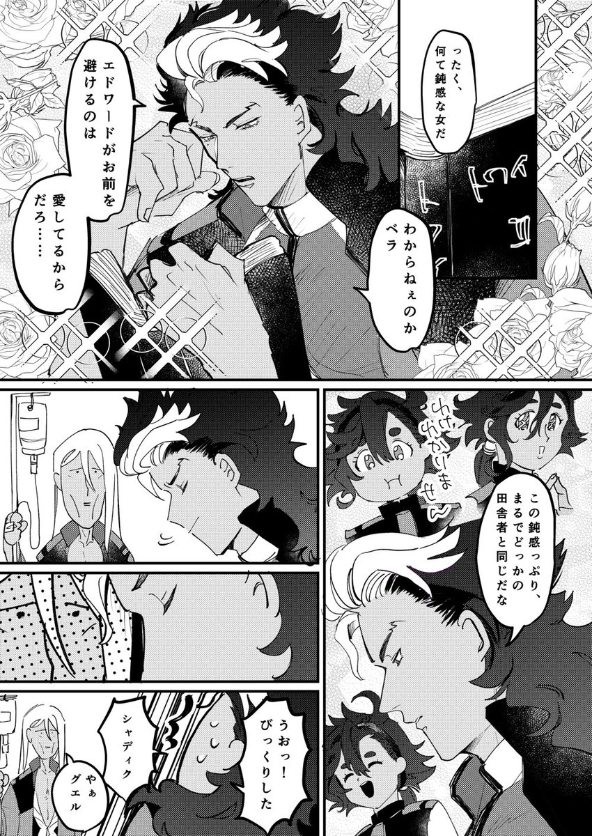 799 2963 愛読書が「トワ〇ライト」なロマンチックグエルくんと失恋直後のシャディクの漫画(グエスレと言い張る) ⚠9話の直後に描き始めて放置してたやつ 22/12/22 20:43