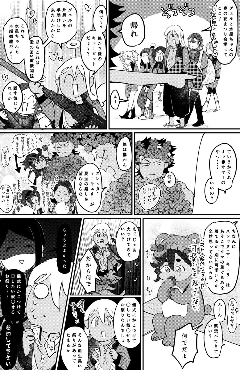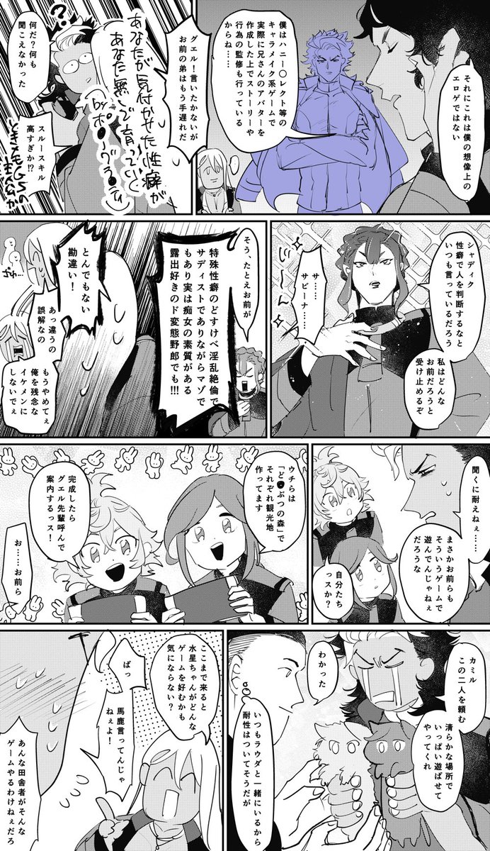 あとこれもう続きを描けるテンションじゃないのでここで供養させて……ちなみに続きはシャディクに「ア○リ」を借りるんだけど中身がホラー映画にすり替えられてたっていうオチでした