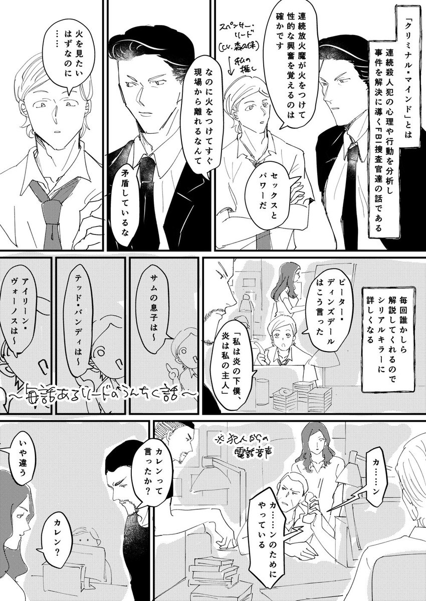 58 219 「クリミナル•マインド」をオススメしたいついでに私がハマるきっかけになったS1-2話を描いてみた(一応ネタバレ注意) ※一部トレスあり 23/05/05 20:37