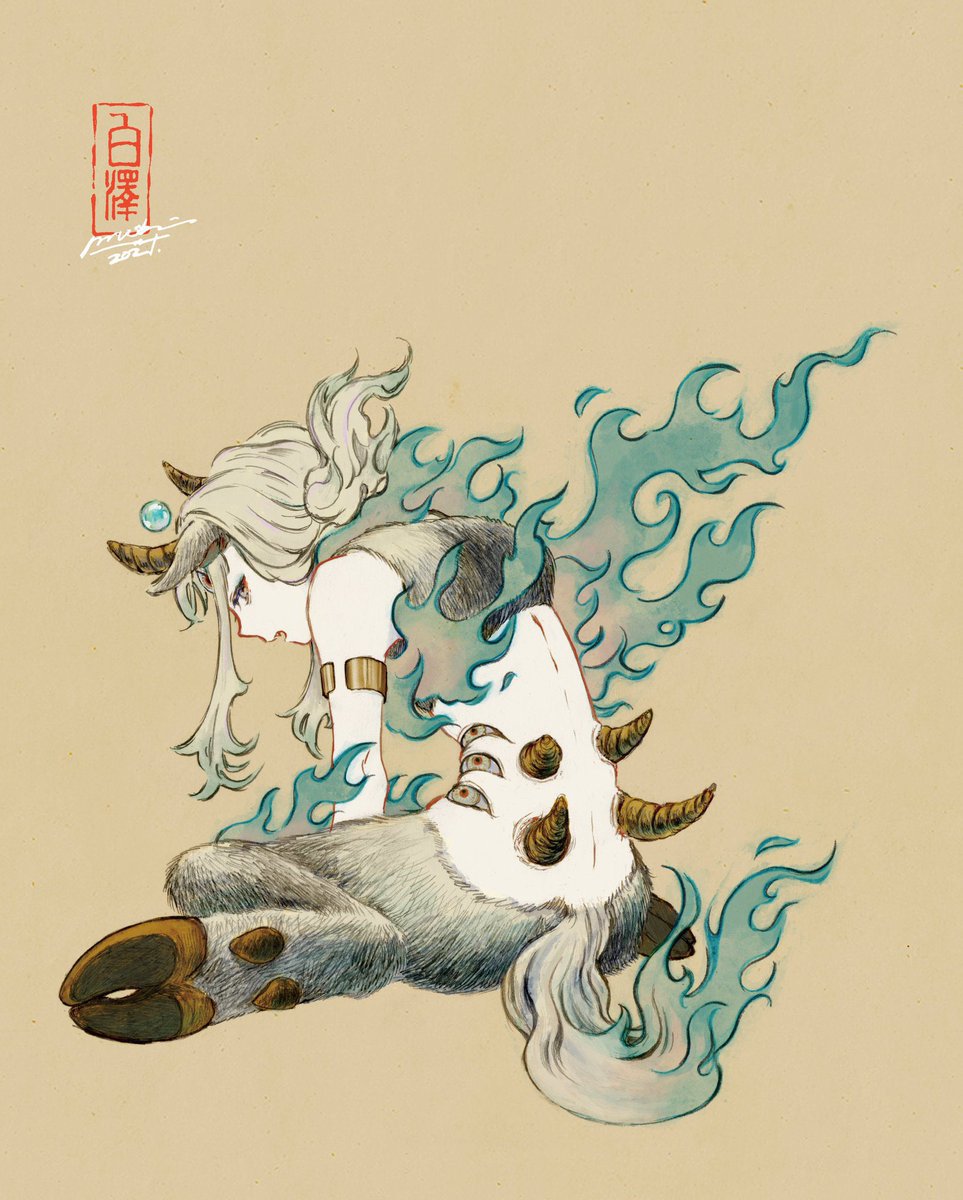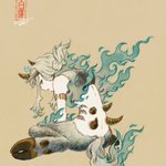 今回は中国の瑞獣「白澤」を描きました。白澤の図は厄除けにもなるそうで、会期途中からにはなりますがこの子のステッカーも作ろうかと思ってます。そちらもよかったらチェックお願いします〜🤲 #アシタノホラー展3