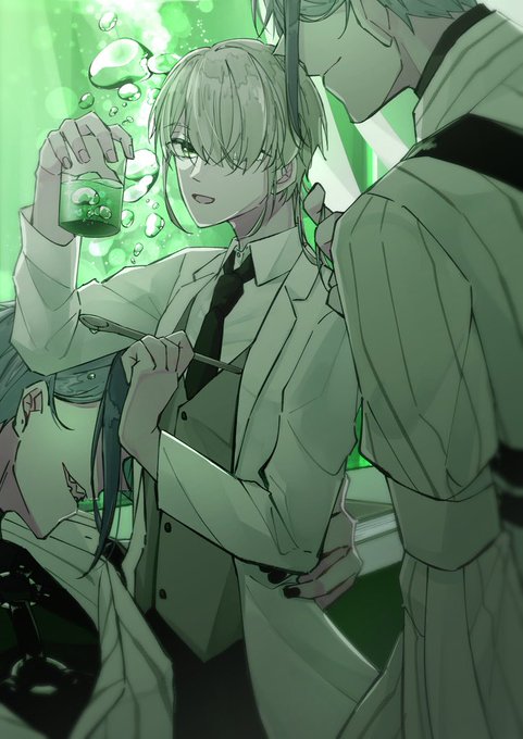 そのラボには、一人の研究者と双子のマミーがいるらしい。 訪ねる際はお気を付けて。棚の薬品には決して御手を触れぬよう…… ⚠️男装&顔出し監督生 イド監♀ #twstプラス