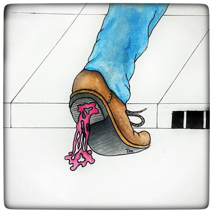 Inktober 2021 Day 12: Stuck I love chewing gum but hate it when it gets stuck to my shoes or clothes. Wrap it up people! #inktober #inktober2021 #stuck #chewinggum #gum #watercolourpaintng #watercolorpainting #foodart #arttherapy #quciksketches #pensketches