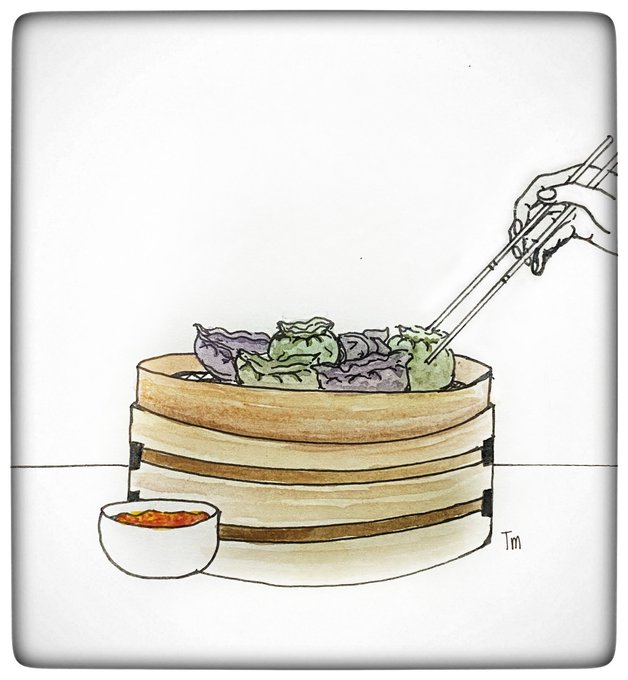 Inktober 2021 Day 10: Pick There’s some Asian food festival happening n picking up some dumplings as a Pick me up. #inktober #inktober2021 #pick #foodart #arttherapy #watercolourpainting #watercolorpainting