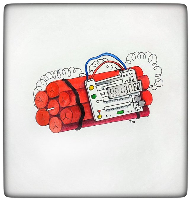 Inktober 2021 Day 14: Tick Tick tick time bomb 🧨💣⏰ #inktober #inktober2021 #tick #timebomb #dynamite #watercolourpainting #watercolopainting #arttherapy #midnightart #sketch #pensketch