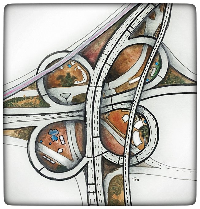 Inktober 2021 Day 19: LOOP I live in a city with a famous loop. #inktober #inktober2021 #loop #kathipara #kathiparajunction #chennai #watercolourpainting #watercolorpainting #pensketch #urbanart #arttherapy #cloverbridge #clover #chennairoads #quicksketch
