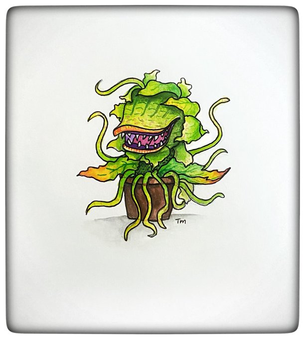 Inktober 2021 Day 20: Sprout Meet Audrey ll from Little Shop of Horrors! A source of horror for me as a kid. 😱😱😱 #inktober #inktober2021 #sprout #pensketch #watercolourpainting #watercolorpainting #halloween #audreyll #littleshopofhorrors #scarymovies #arttherapy