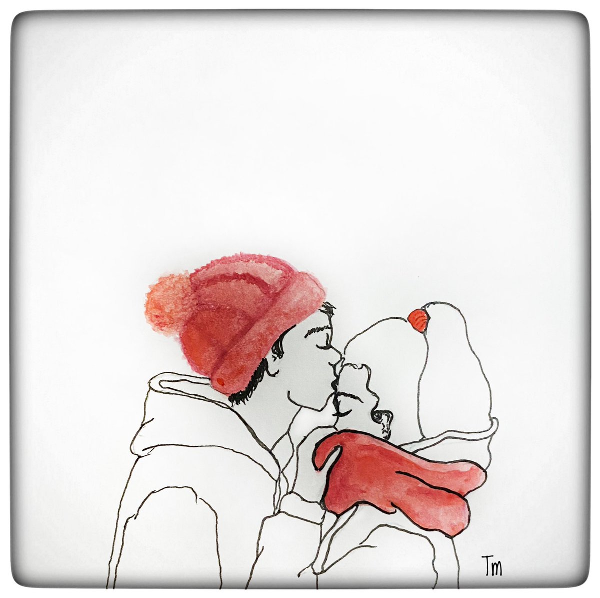 Inktober 2021 Day 21: Fuzzy Forehead kisses are the best. They give a warm fuzzy feeling all over. 🥰 #inktober #inktober2021 #fuzzy #winter #love #arttherapy #pensketch #watercolourpainting #watercolorpainting #foreheadkisses