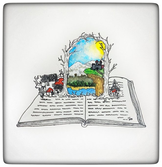 Inktober 2021 Day 22: Open Opening a book opens the way to magical worlds and gives me much needed relief from reality. 🥂to the written word! #inktober #inktober2021 #open #pensketch #watercolourpainting #watercolorpainting #quicksketch #arttherapy #books #magicalworlds