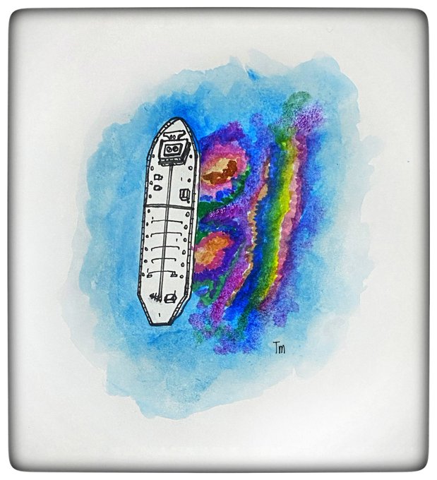 Inktober 2021 Day 23: Leak As an environmentally conscious person oil leaks in the ocean were the first thing that sprang to my mind. #inktober #inktober2021 #leak #watercolourpainting #watercolorpainting #pensketch #oilleak #oiltanker #environment #globalwarming