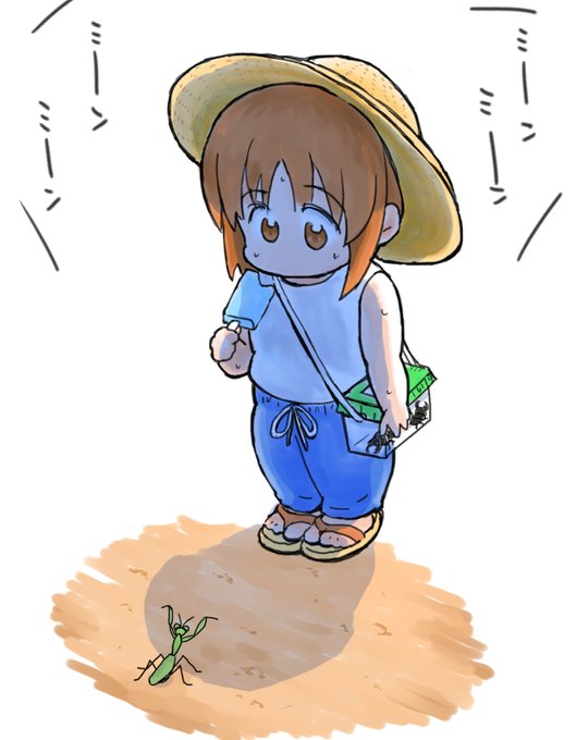 クワガタをゲットした帰りに カマキリに出会ったみほ
