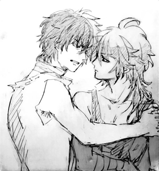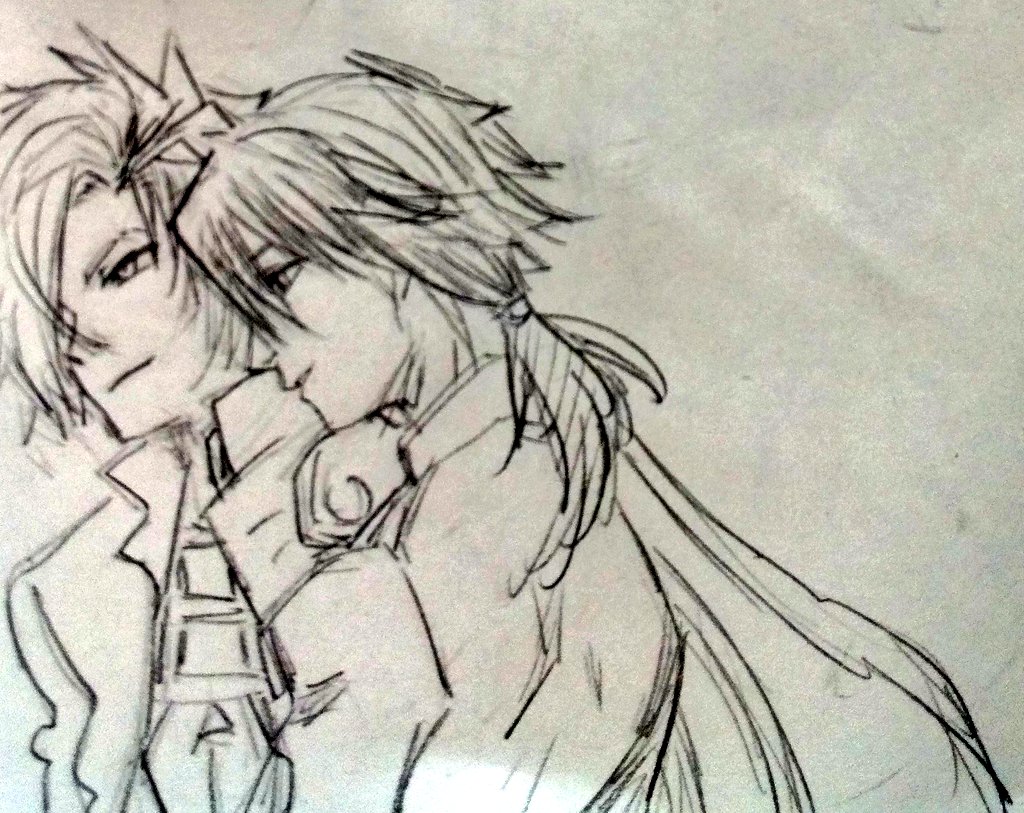 晋りょ描いてみたくてクソほど描き直したけど2人とも難しすぎるな私には これが精一杯だった