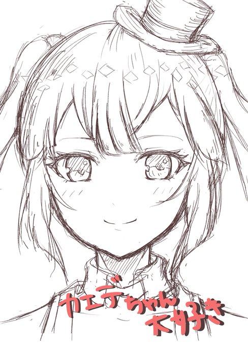 カエデちゃんのデフォルメ描いたけど、これ綺麗に描いてキーホルダーにしようっと!! #夜月カエデ #画伯カエデ