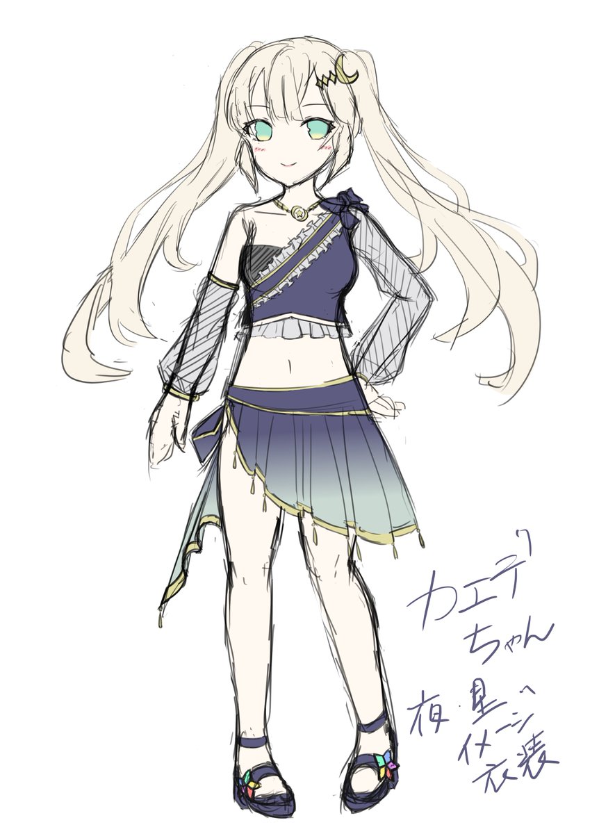 カエデちゃんの夜空と星をイメージした衣装のラフ画になります!! イラスト描くためにまず全体図なう カエデちゃん大好き(*>ω<)ω<*)ギュ~ッ♡ #夜月カエデ #画伯カエデ
