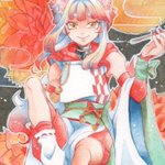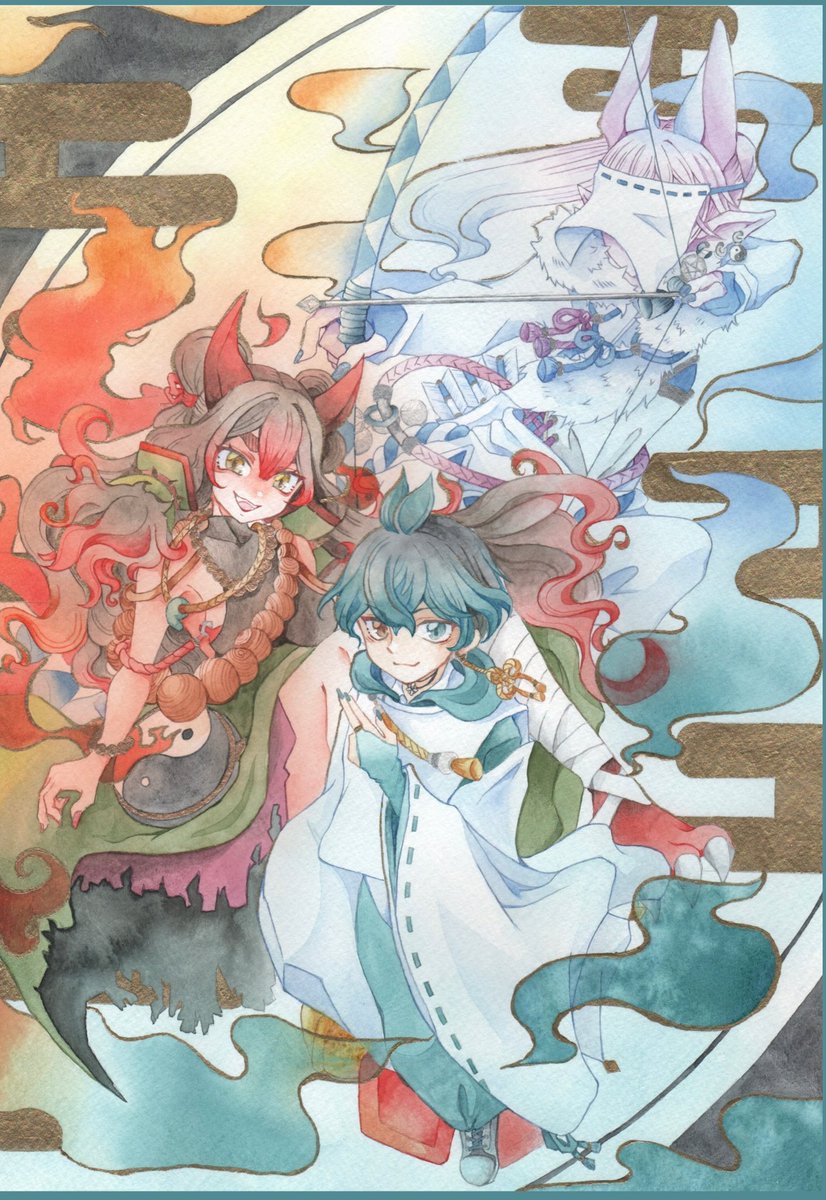 アクリルデネブ水彩紙に上羽絵惣(顔彩)で着彩 上羽絵惣さんの金色、渋くて まるで金箔貼ってるみたいに こってりした塗り心地が凄く好き #アナログ絵 twitter.com/muttikutiku/st…