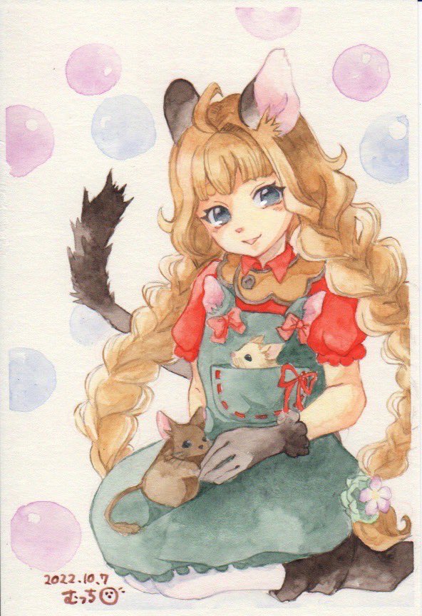#三億アカウントの中から私を発掘してください 3億…!! ケモミミ麻呂眉🦊🐭が好きです… 絵描いてます! うちの子チンチラのモナちゃん自分用にグッズ化したくて擬人化してしまいました…🫣💕 #透明水彩