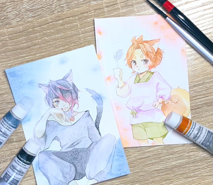 ファンアート…という名のフォロワーさん自分好みにイケメン化 ※ご本人様了承済み 芝さん(柴犬ショタ)と紗紀ちゃん(クロネコ) 妄想設定あるけどご本人様とファンの方にバチボコに怒られそうなので内に秘めておきます… #透明水彩 twitter.com/muttikutiku/st…