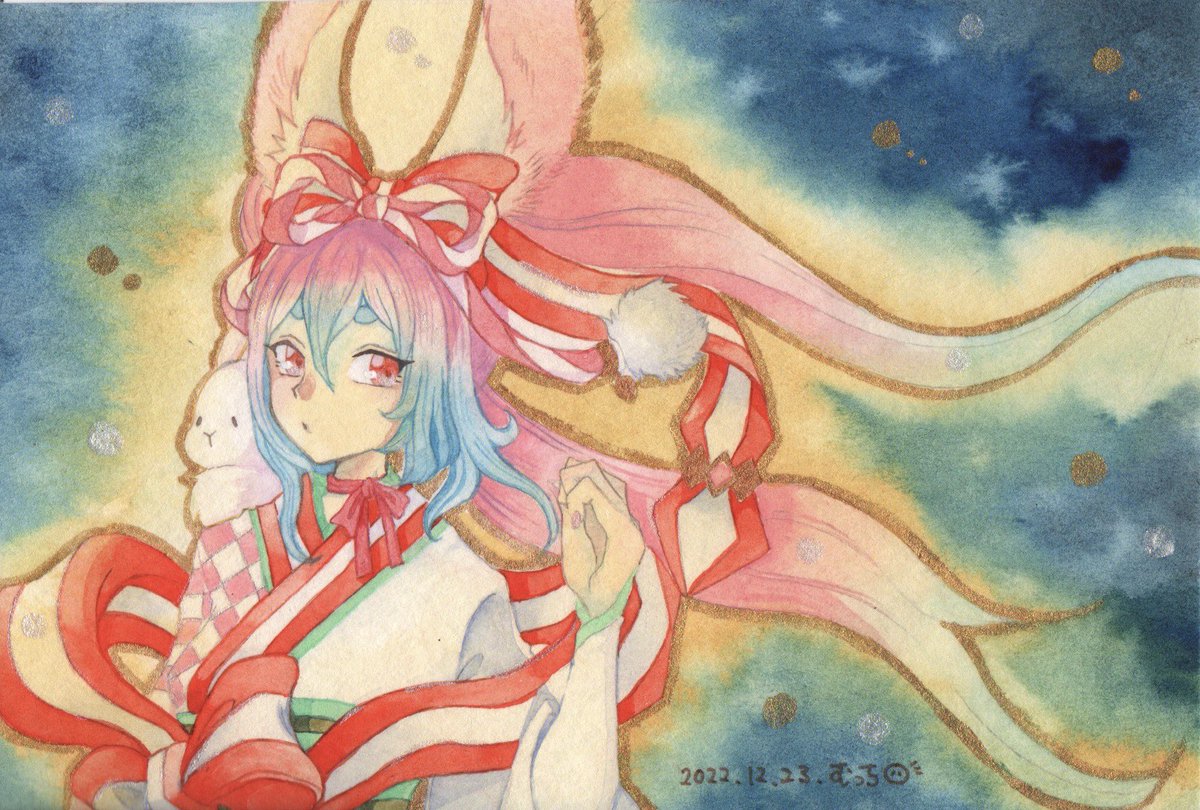 #ハガキサイズに詰め込む私の世界 #透明水彩 アルビレオ水彩紙にホルベイン透明水彩、ラメ顔彩で着彩 AtelierCOMETさん(東京浅草)で開催されるきつね夏詣展に出品します🦊🏮 twitter.com/muttikutiku/st…
