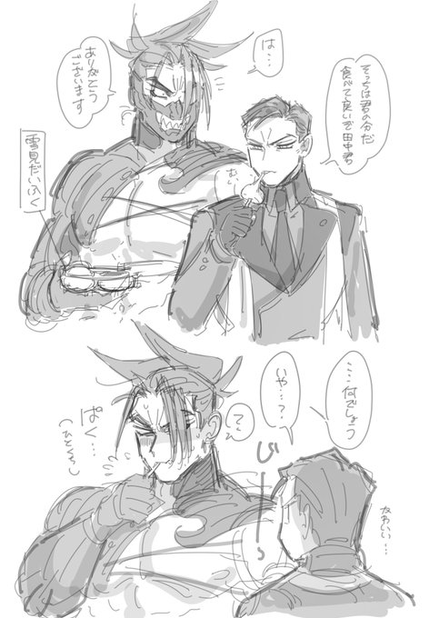 お題「紅」「白」「正月」 2人が食ってるのは私が正月に食ったケーキです #tksn_1h_dw