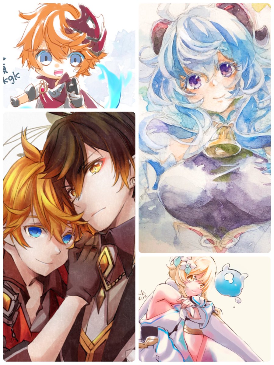 #フォロワーさんの推しが描きたい わーい!完成しました。推し描かせてくださった方ありがとうございましたー!下段は埋まらなかったので描きたかった3人で!クレーちゃんと旦那は弊ワットに早く来てくださ…(๑ーㅅー๑)