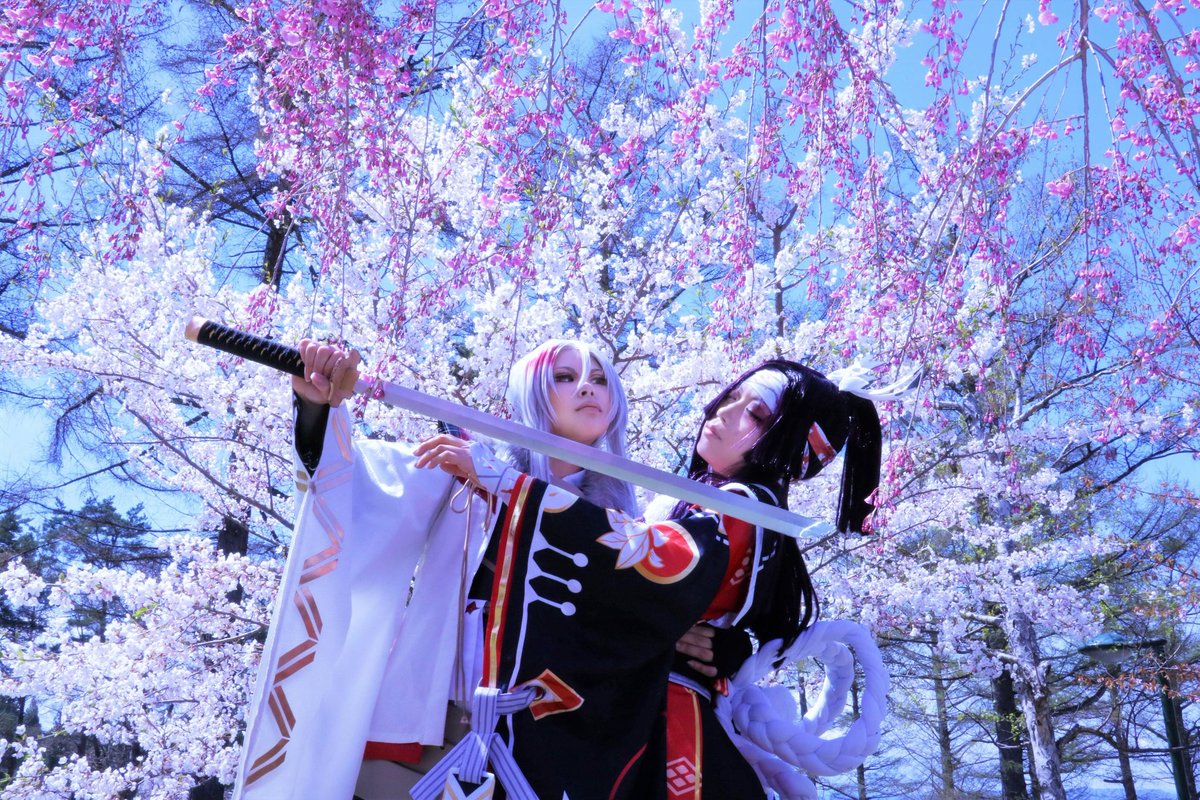 ⚠︎注意⚠︎【Cosplay】⚠︎注意⚠︎ 刀剣乱舞 鶴丸国永 鬼丸国綱 「鬼丸。お前の後ろは任せておけ!」 鶴丸国永:俺 鬼丸国綱:@suruga0033 photo:@hide_Sony99m2 #Cosplay #コスプレ #刀剣乱舞レイヤー #刀剣乱舞 #鬼丸国綱 #鶴丸国永 #ぱれくら #花と泉の公園