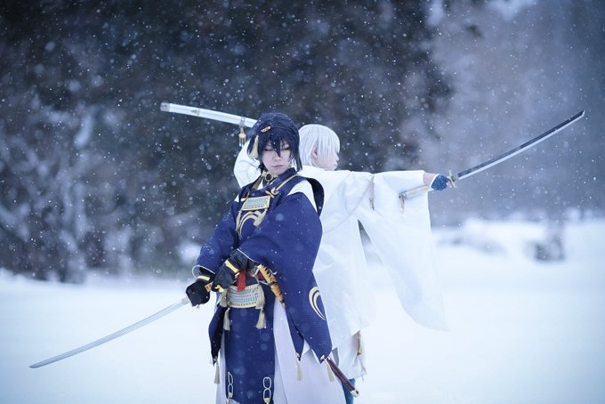 ⚠️注意⚠️【Cosplay】⚠️注意⚠️ 刀剣乱舞 コスプレ 三日月、君の後ろは俺に任せとけ。 雪がこれ以上降り積もる前に終わらせようか。 三日月宗近:@hajimekamone photo:@hide_Sony99m2