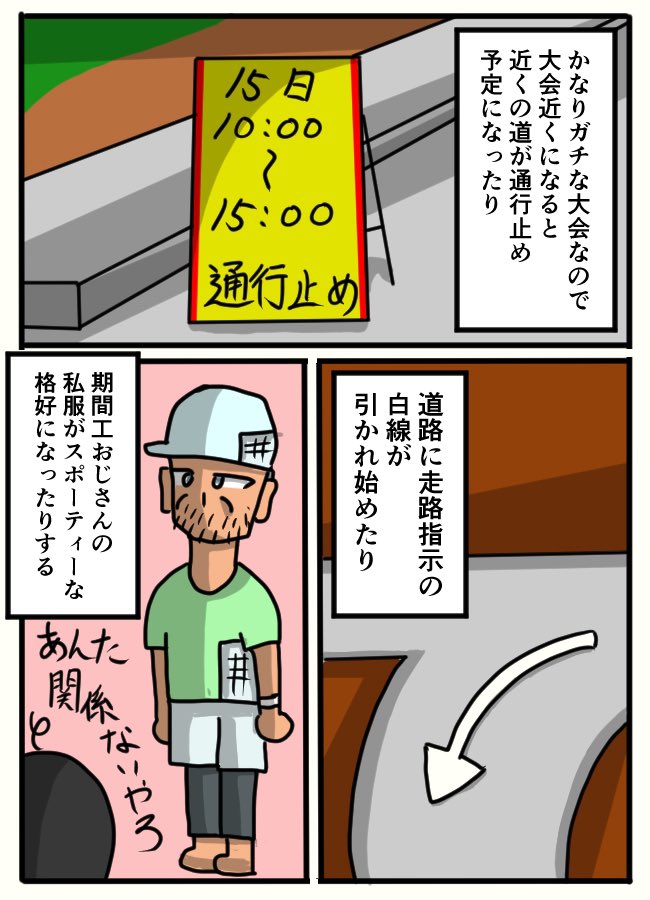 5 46 期間工がヨシッ! 第96話 地域のマラソン、 ヨシッ! #漫画が読めるハッシュタグ #エッセイ漫画 22/04/27 02:57