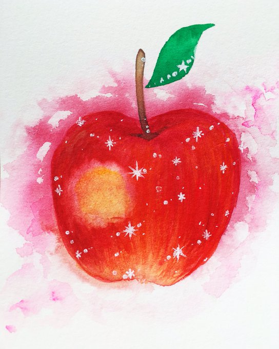 かじった🍎😊 色んな赤と黄を混ぜた水彩画です♪ 加工で彩度をあげたら美味しそうな感じになった✨ #ブルーピリオドターナー #イラスト練習 #イラスト #絵描きさんと繋がりたい #水彩画 #りんご