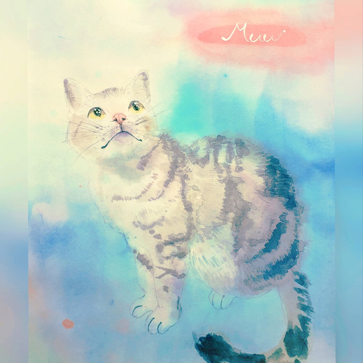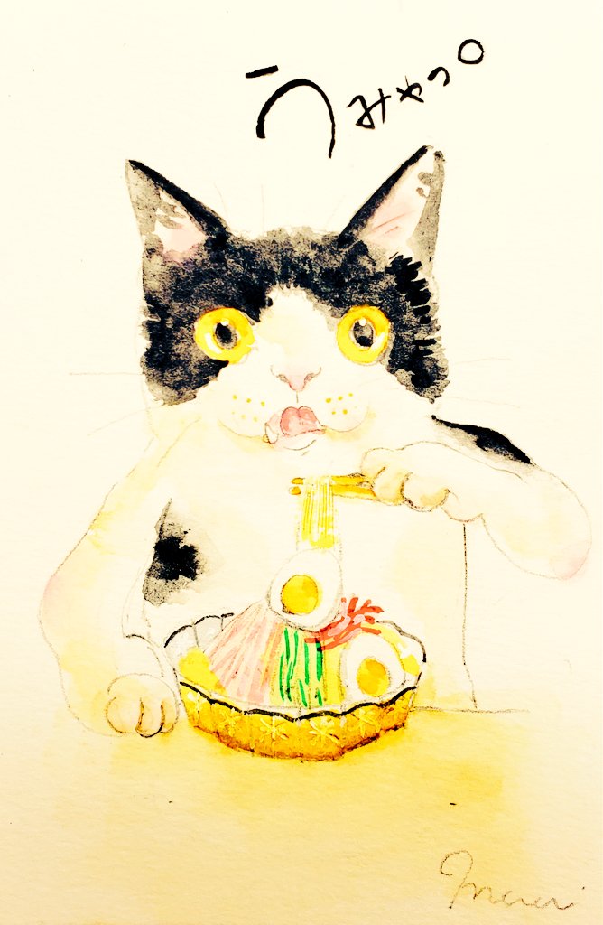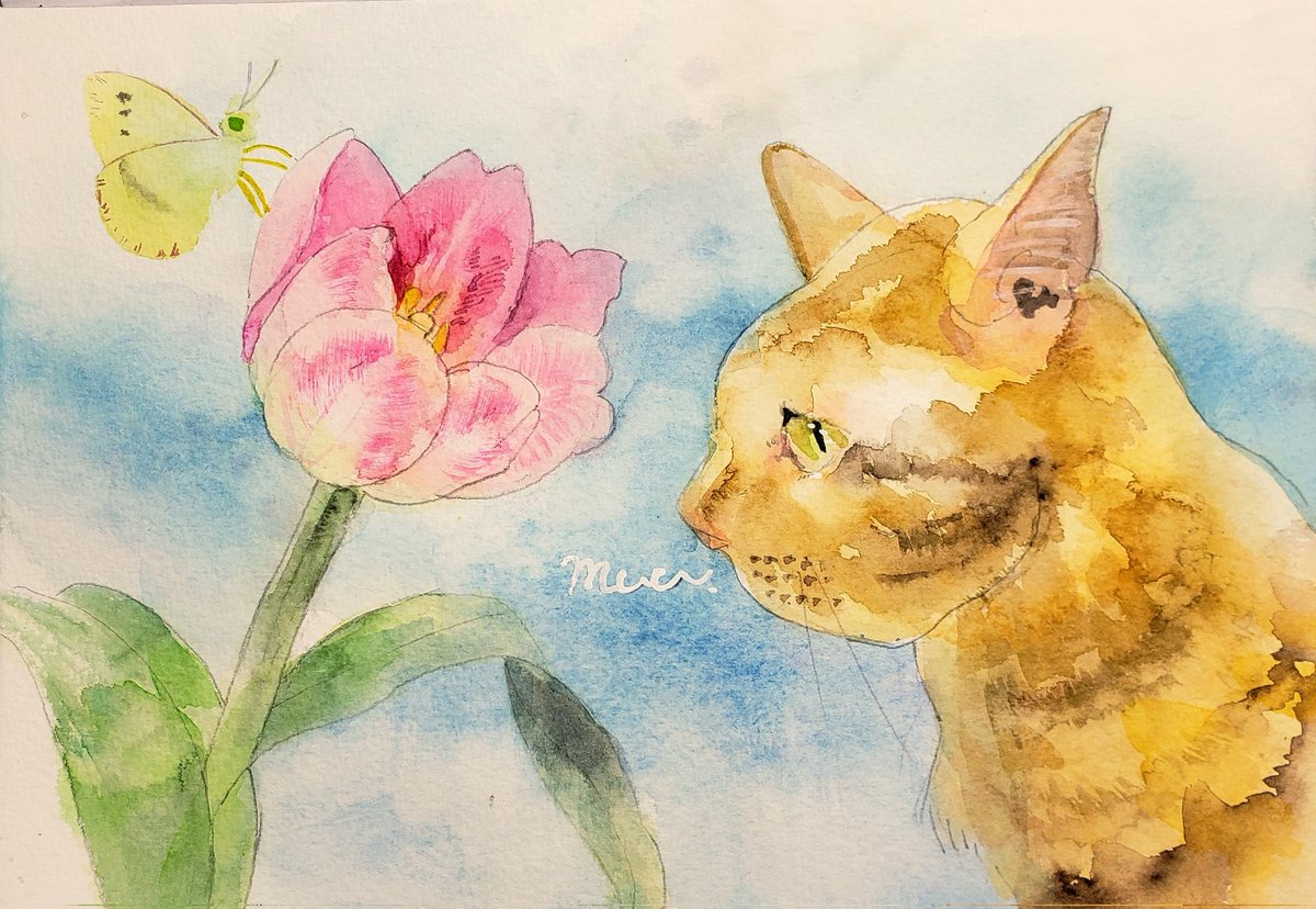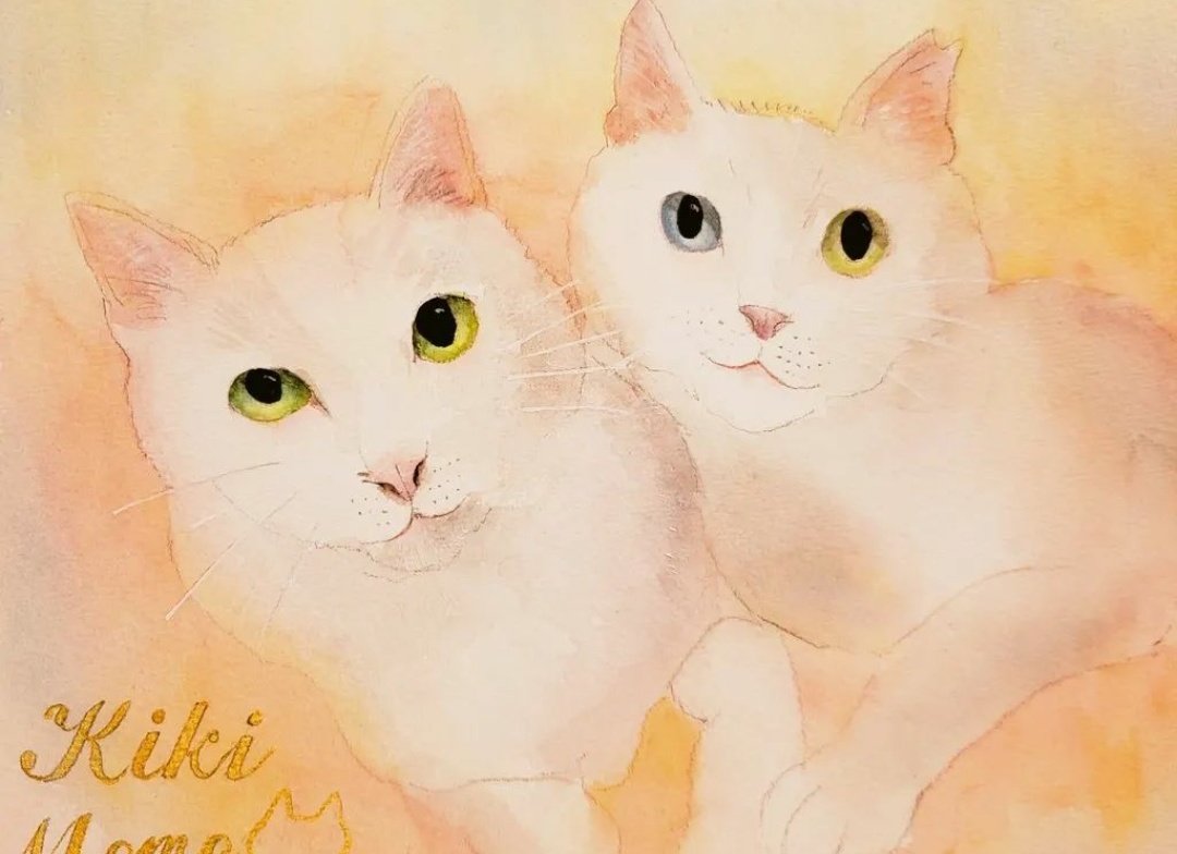 @Sazanka_352 さんの きぃちゃんとまめちゃんを 描かせていただきました。 月子さんをイメージして、 夜空、夕暮れ時を表現してみました。 はがきサイズ。ウォーターフォード。 #透明水彩 #猫好きさんと繋がりたい #絵描きさんと繋がりたい #ご依頼
