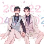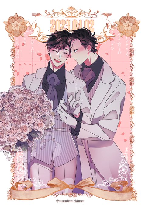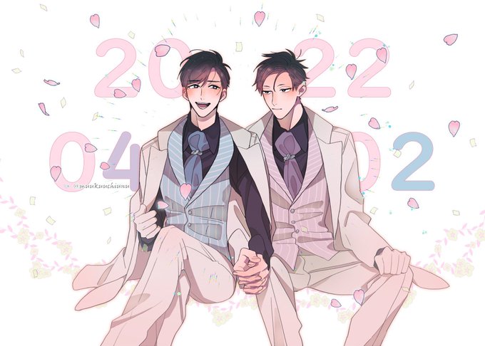106 462 一カラの日おめでとう💜💙 毎年恒例ジューンブライド衣装の初々しい新婚一カラと、数年後の結婚記念日イメージしたイタリアスーツ衣装の一カラです(妄言) 23/04/02 07:31