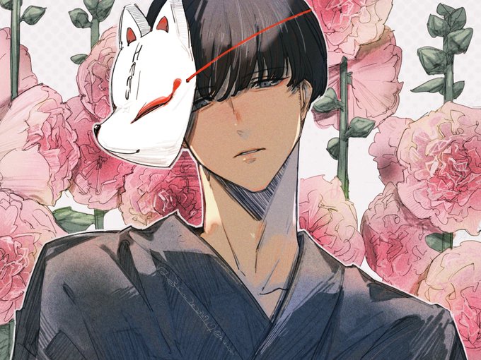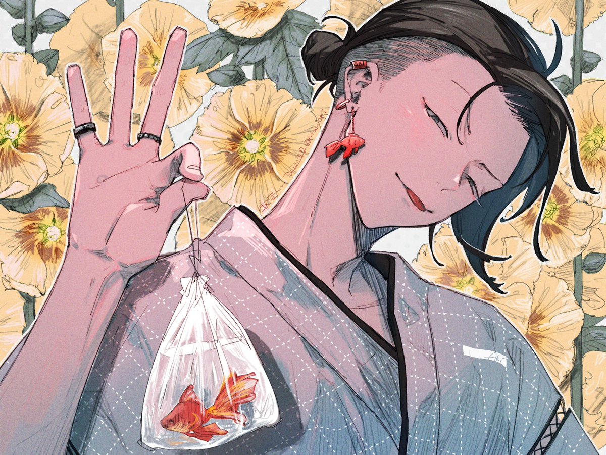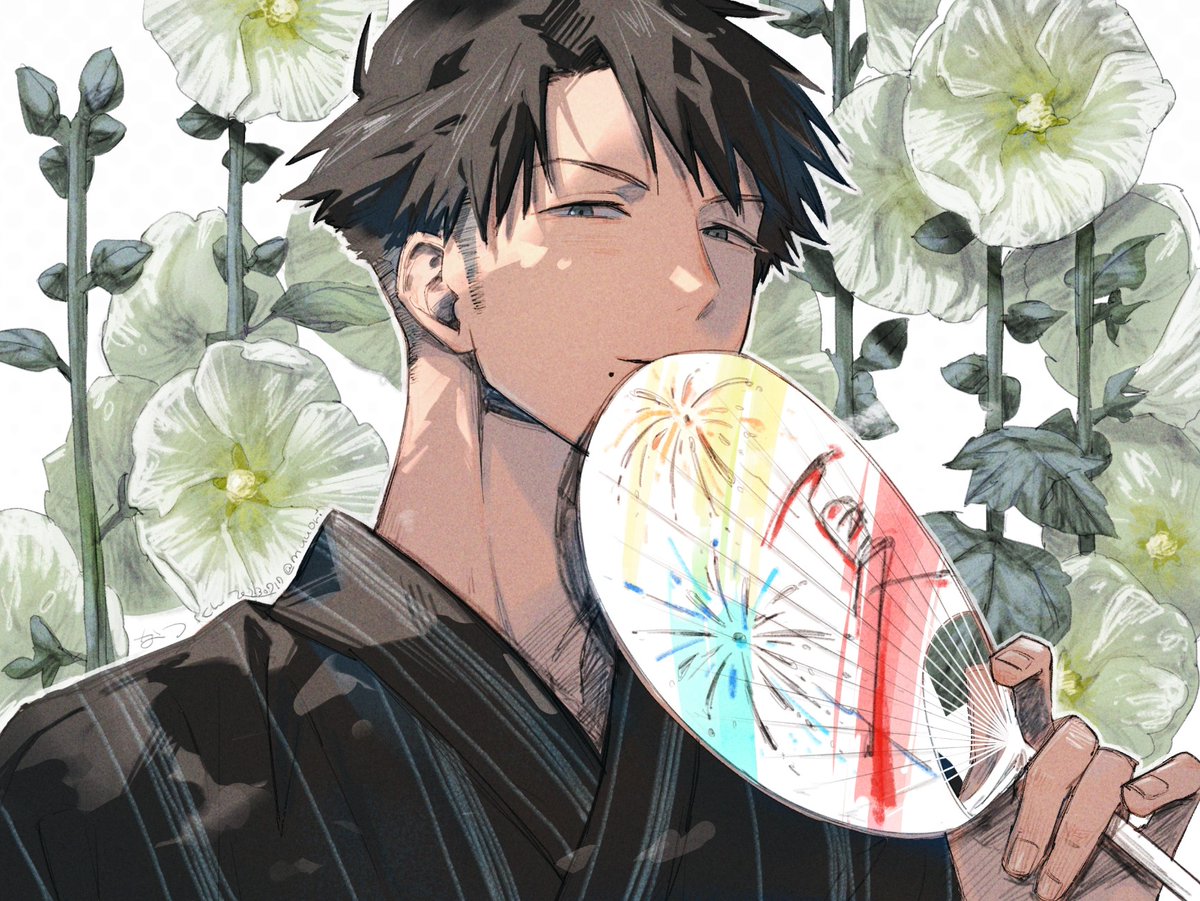 #三連休はフォロワーさんが増えるらしい #イラスト #創作男子 夏祭り 立葵