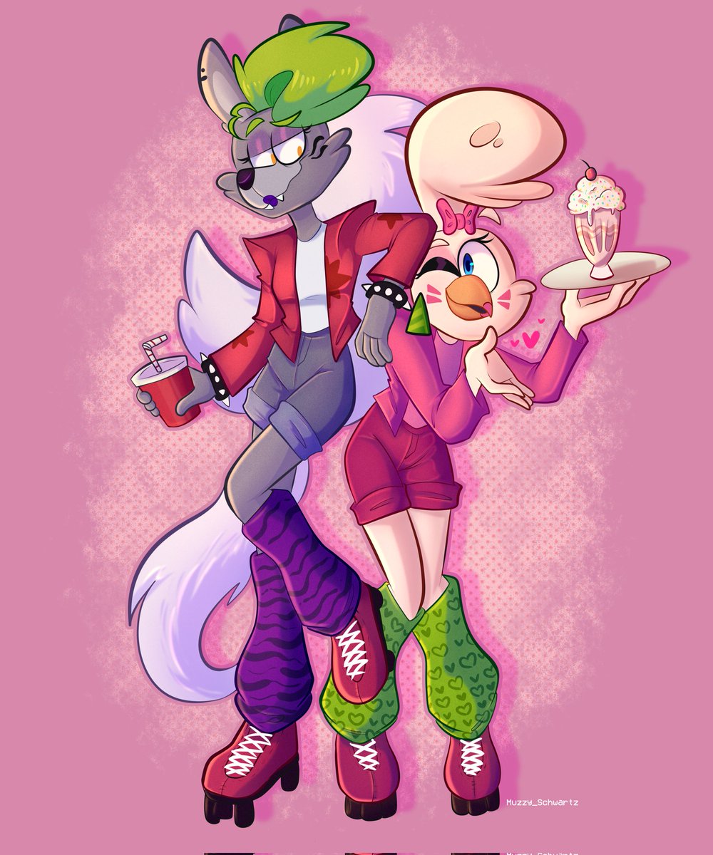 Lo vi por ahí y me recordó a estos 2 jaja #fnaf #fivenightsatfreddys #securitybreach #art #fanart #roxannewolf #foxythepirate