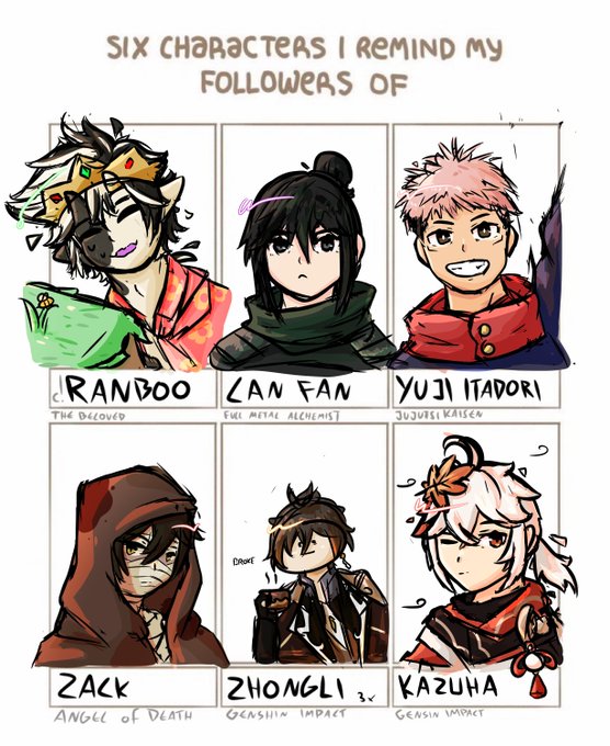 Totally not me taking a month+ #ranboofanart #lanfan #fma #yujiitadori #jujutsukaisen #IsaacFoster #angelsofdeath #genshinimpact #zhongli #kazuha