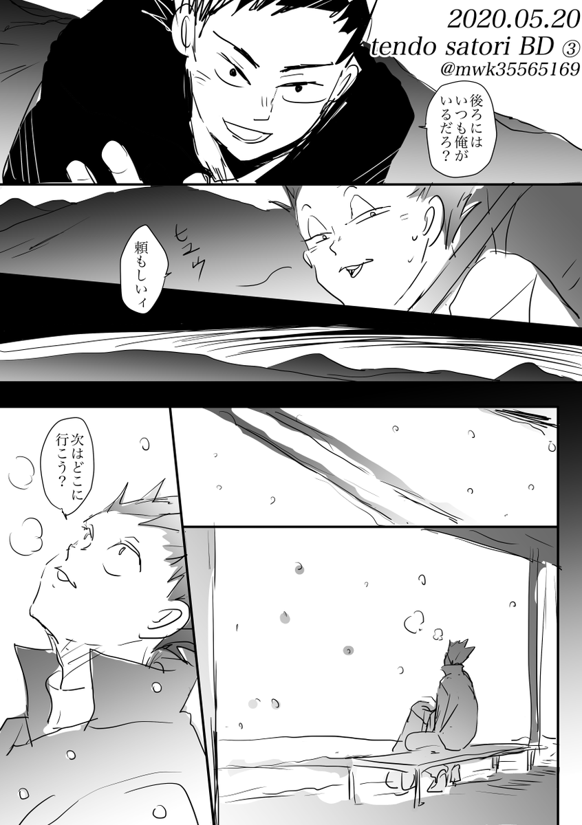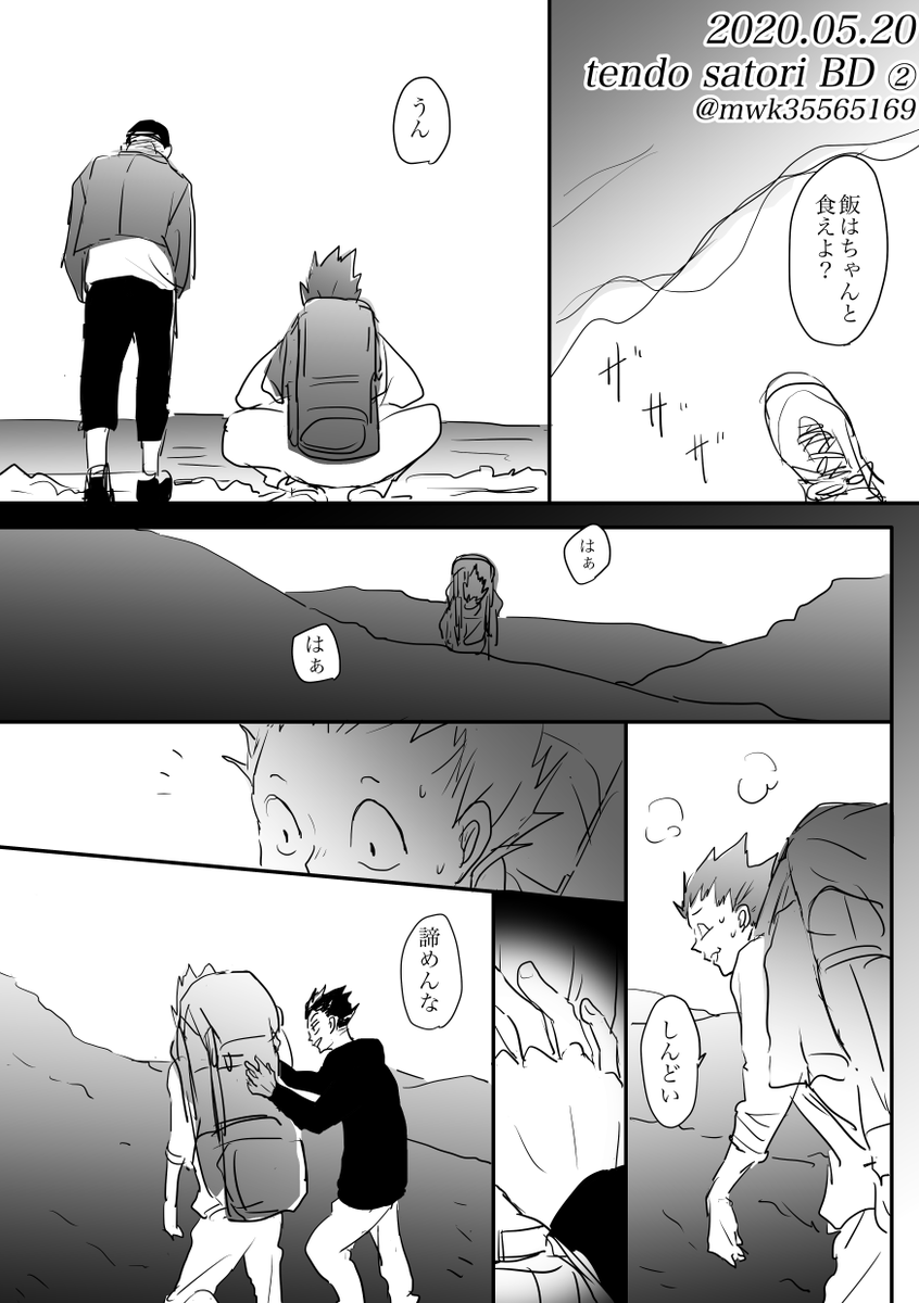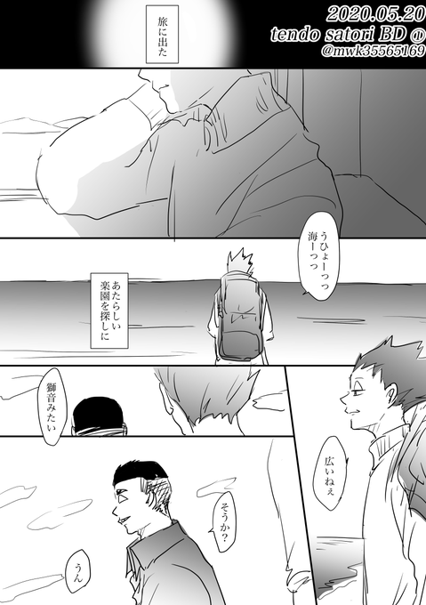 #天童覚生誕祭2020 今更だけど(まだ完成してない)😅 本誌ネタバレ避けまくってる人間が描いた卒業後に旅に出る天童妄想 鍵かけてる時にツイートした曲聴いてたらまた描きたくなった、ので、なんとなく流してみた