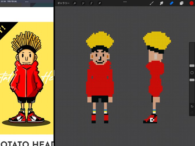 10 31 ジャンキーズをボクセル3D化するときのピクセルの下絵を一挙公開! 今後これがNFTになるとかならないとか😏 すでに作ったボクセル達をどうNFTにしていくかいろいろ検討中です。こうご期待🍟 #NFT #pixelart #ドット絵 #voxel #junkeeees 22/08/12 12:07